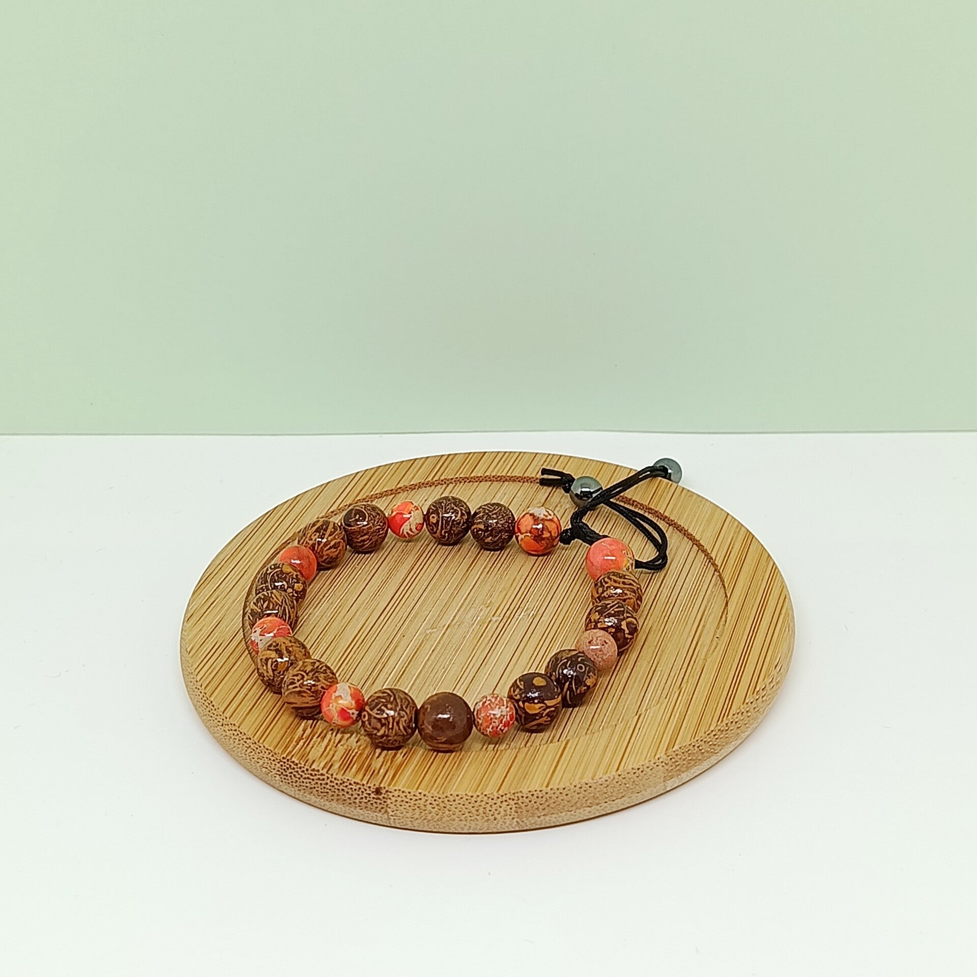 Bracelet en pierres naturelles jaspe éléphant et jaspe impérial orange – bijou fait main – fermeture macramé – PYRÉLIS