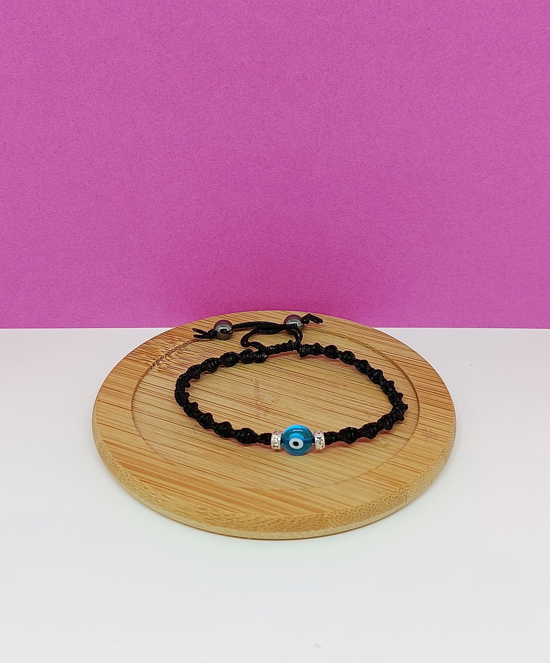 Bracelet tissé macramé fait main avec perle en verre œil bleu de la chance – Oryalis