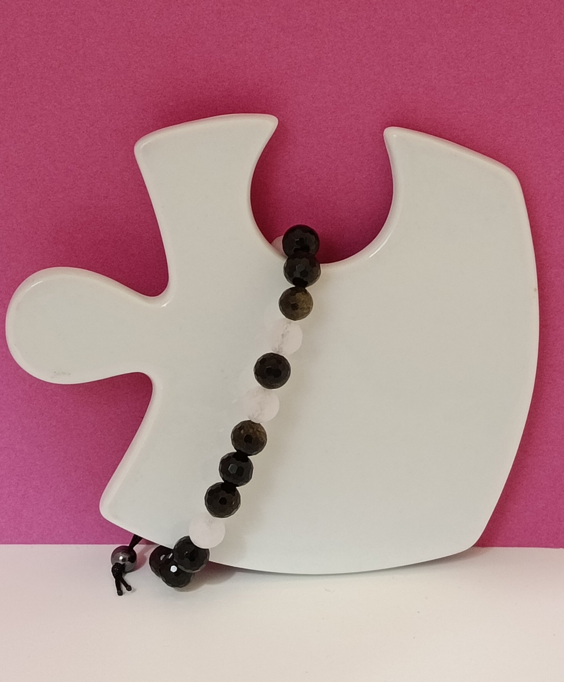 Bracelet en pierres naturelles obsidienne et quartz rose – bijou fait main – Obsyra