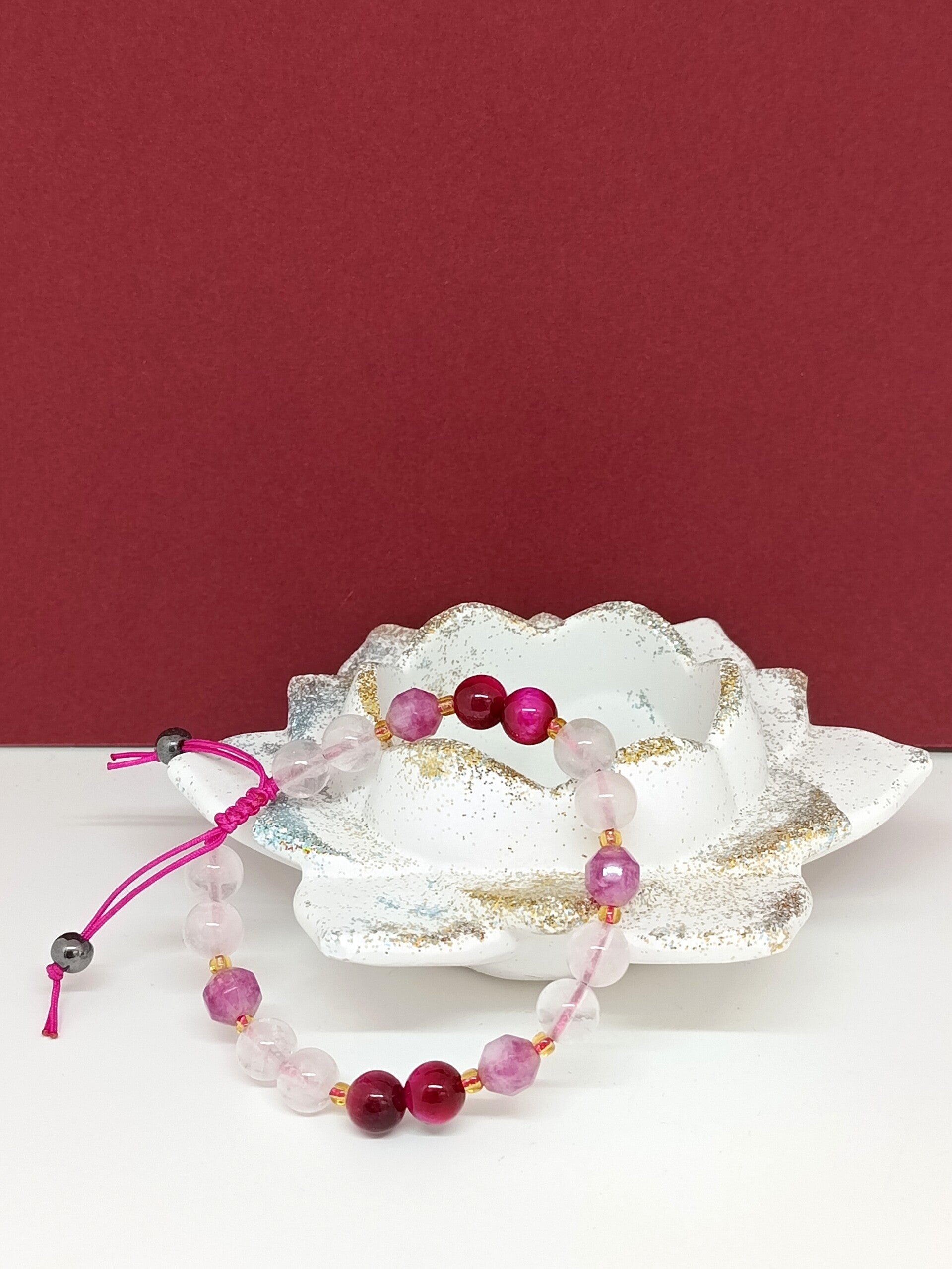 Le bracelet se poursuit avec des perles d’œil de tigre rose de 8 mm, qui apportent confiance, stabilité et rayonnement personnel, tout en conservant une énergie douce et féminine.