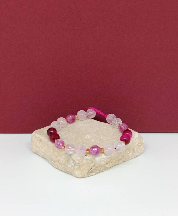 Bracelet Quartz rose, Agate facettée et Oeil de tigre rose – Bracelet pierres naturelles – Douceur, confiance et rayonnement – Création artisanale Rosée d' Aurore