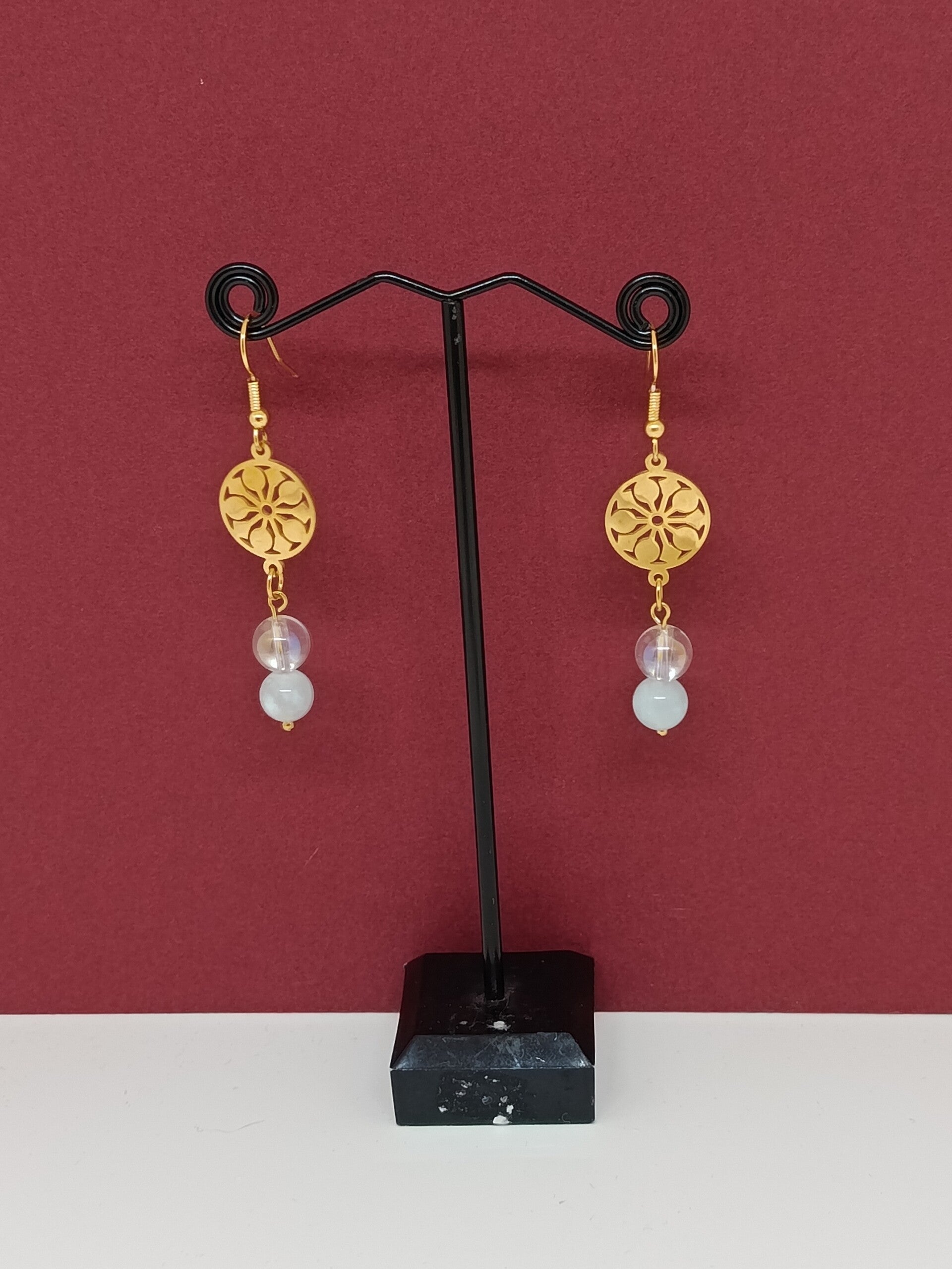 Laissez-vous porter par la douceur et la lumière de ces boucles d’oreilles faites à la main.