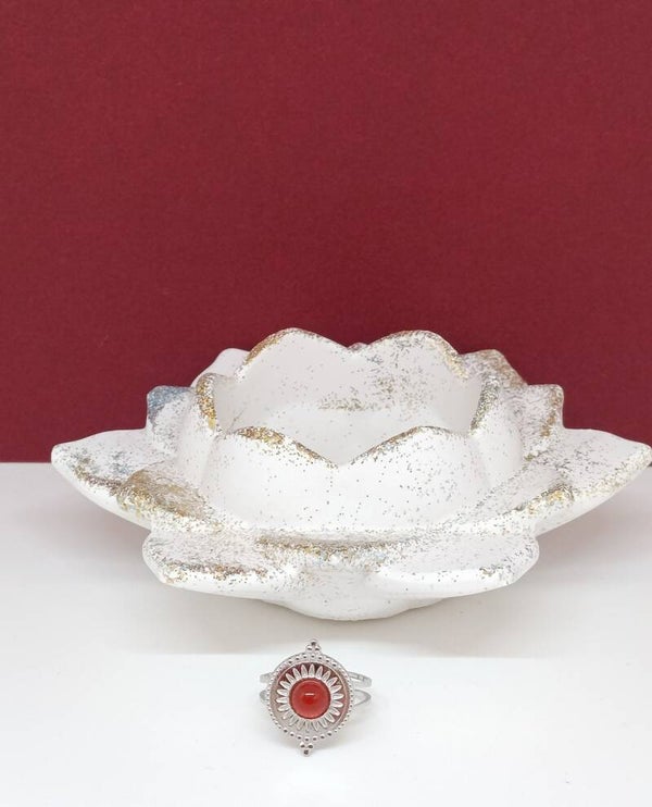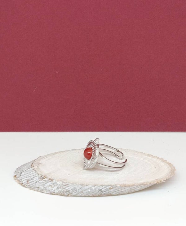 Bague cornaline argentée acier inoxydable réglable femme – bague pierre naturelle fleur bohème élégante