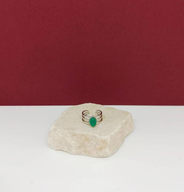 Bague agate verte argentée acier inoxydable réglable femme – bague pierre naturelle élégante bohème