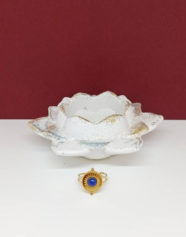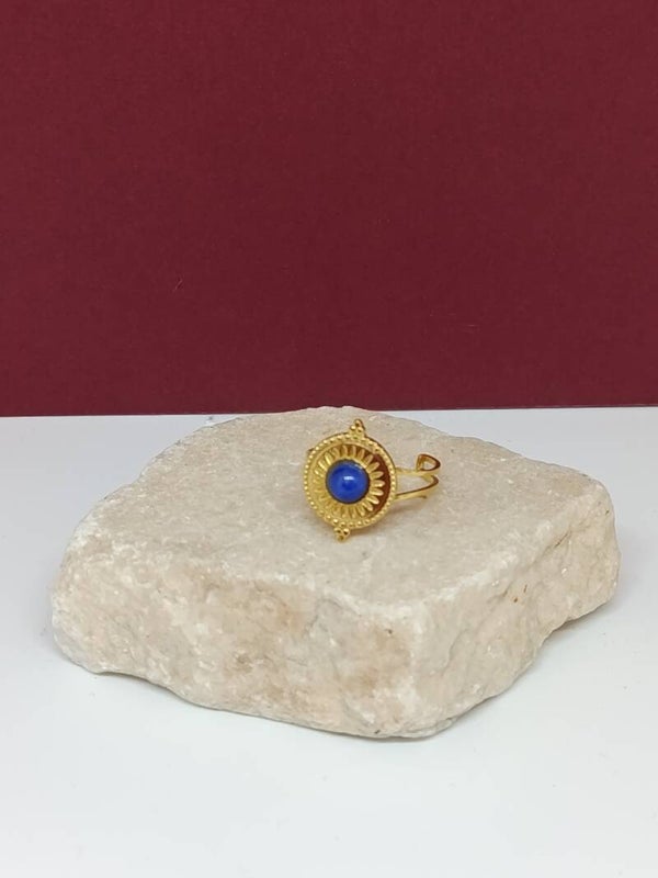 Bague lapis-lazuli dorée acier inoxydable réglable femme – bague pierre naturelle fleur bohème élégante