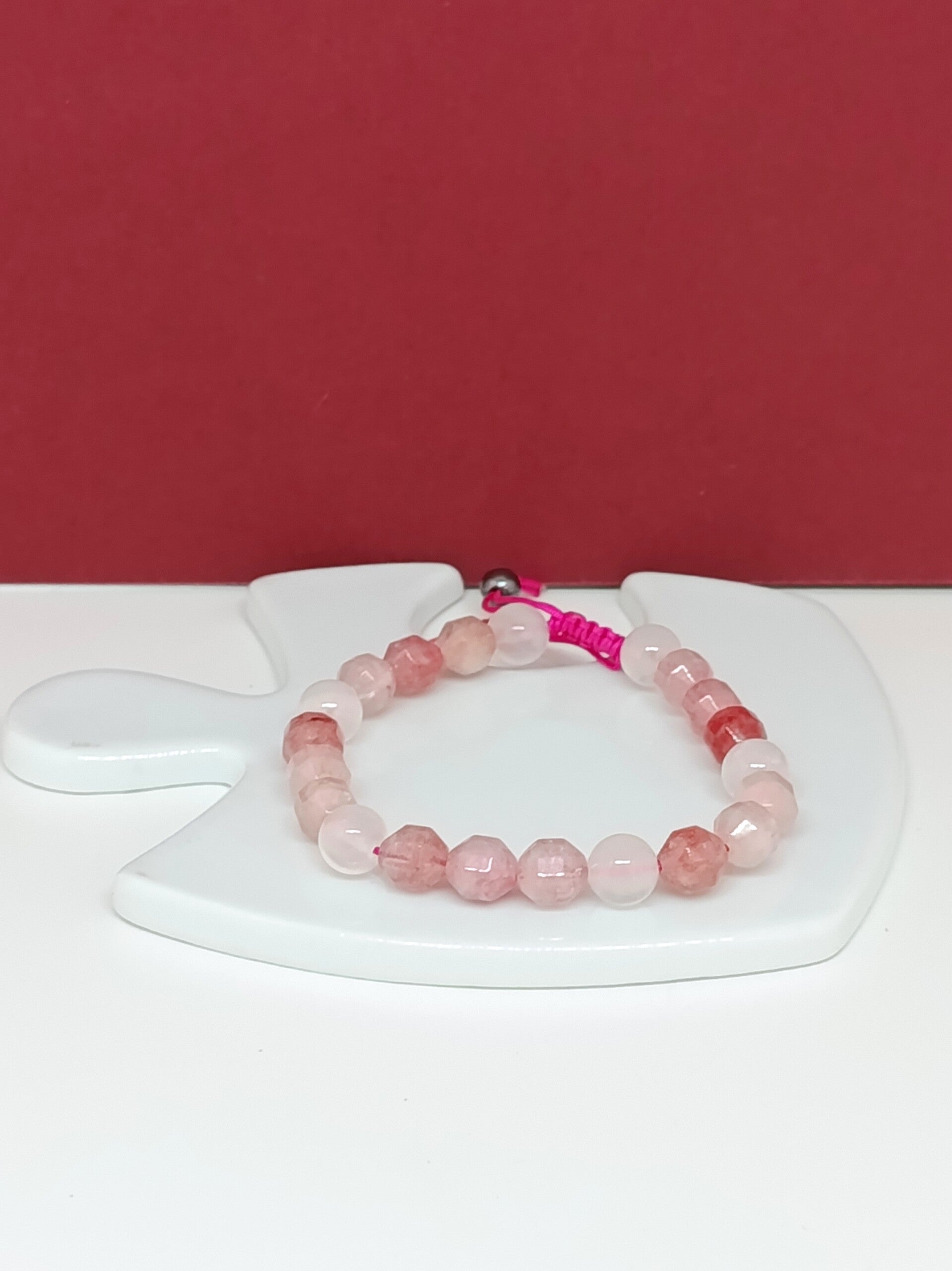 Laissez-vous séduire par ce bracelet en pierres naturelles, une création artisanale délicate aux nuances rosées, inspirée par la douceur et l’élégance des pétales de fleurs.