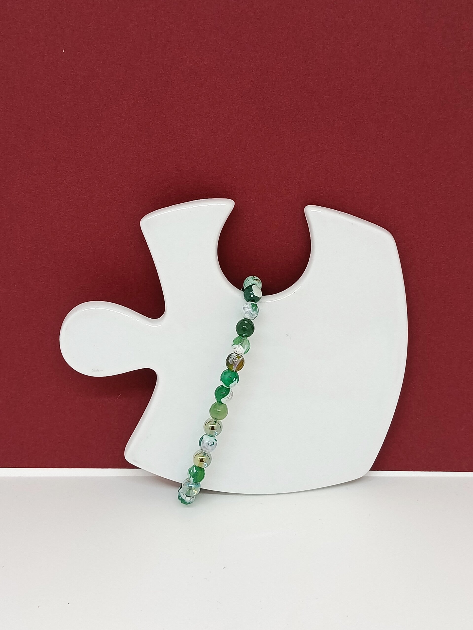 Laissez-vous séduire par ce bracelet en pierres naturelles, une création artisanale aux nuances délicates de vert, de blanc et de légères touches de mauve.