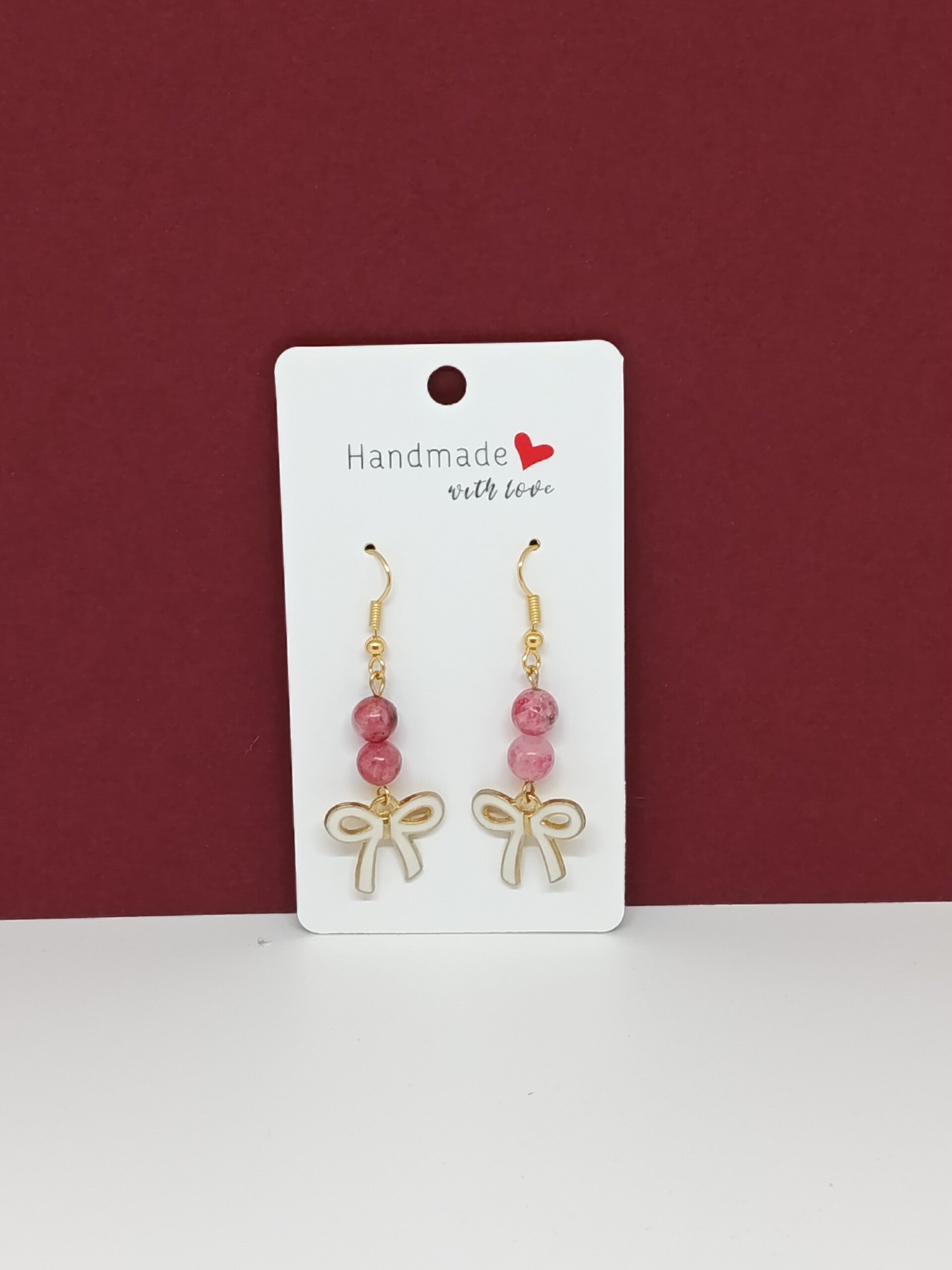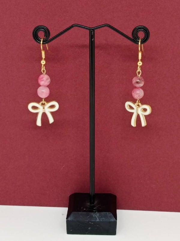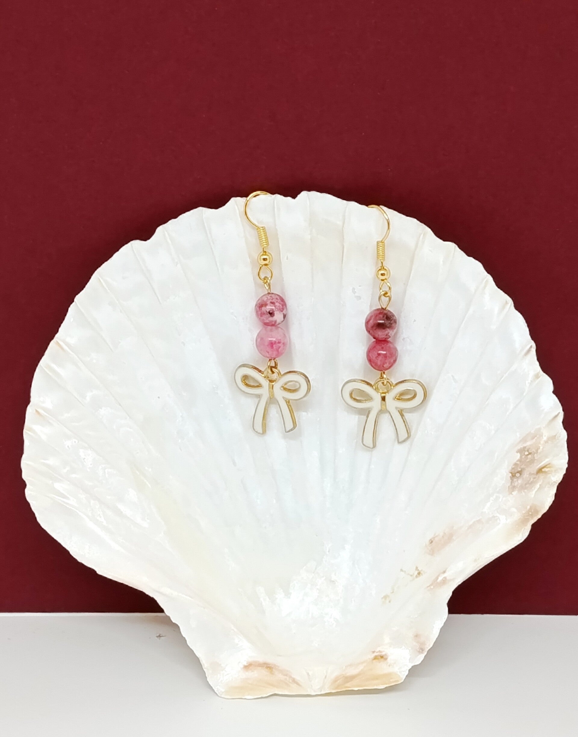 Boucle d oreilles Rhodochrosite& noeud délicat - fait main- Tendresse rosée