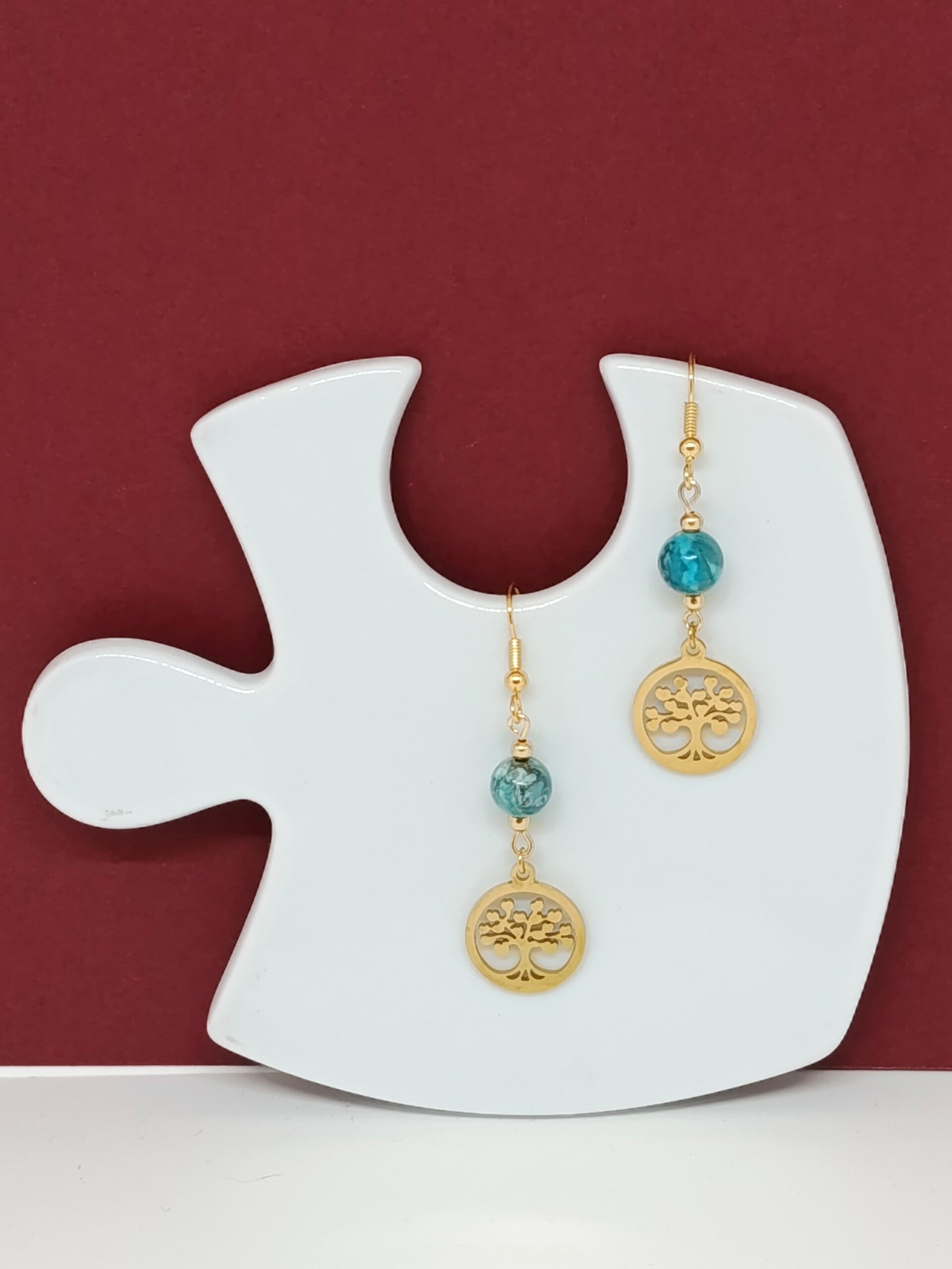 Boucles d'oreilles turquoise d' Afrique& arbre de vie- Doré- fait main - Soufle d'Azur