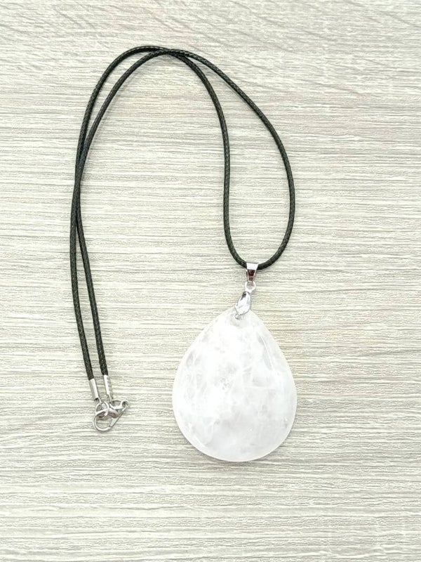 Monté sur un cordon ciré noir, avec une bélière en métal argenté et une chaîne de rallonge d’environ 5 cm, il s’adapte facilement selon le style et la longueur souhaitée.