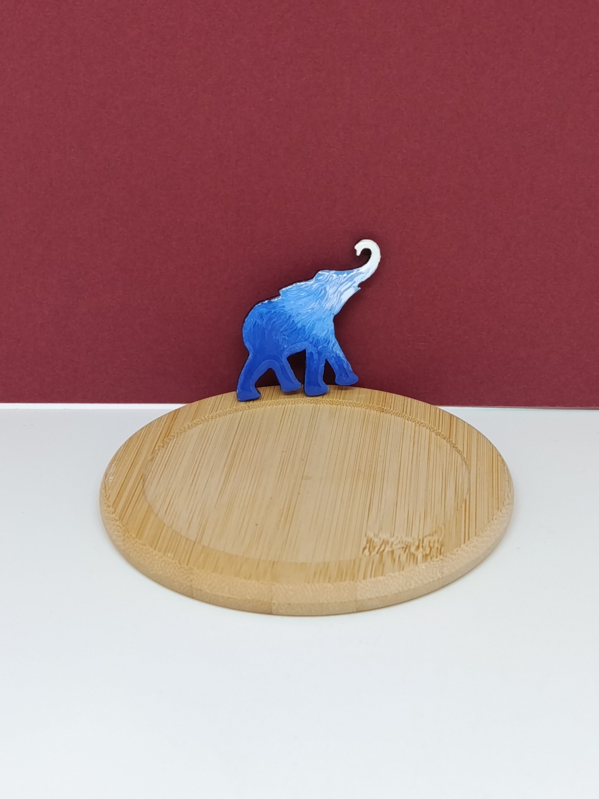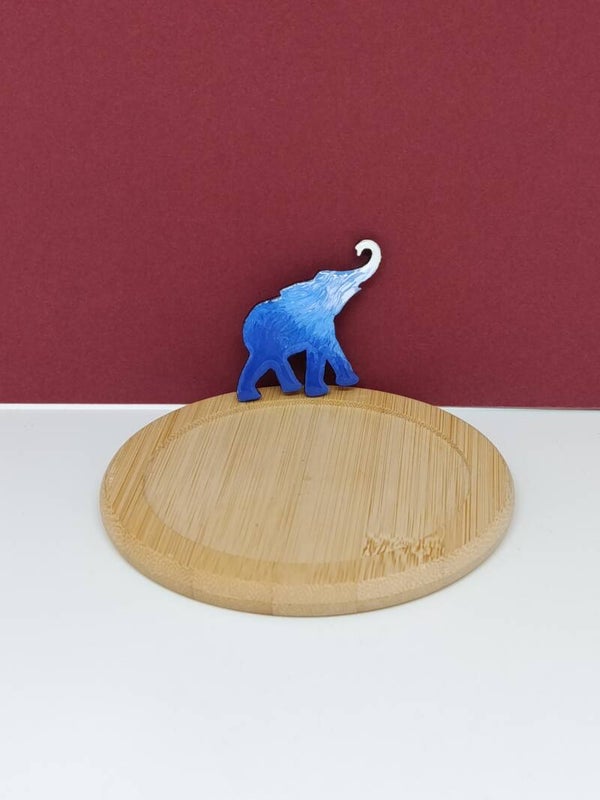 Broche éléphant - Bois peint&résiné - fait main - Elephant Céleste